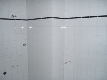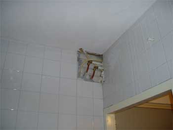 | De leidingen lopen gewoon over de muur.. | Beetje kalkaanslag op mijn mooie douchevloer! | |||