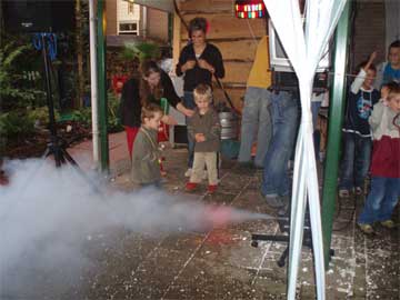 Een echte rookmachine! Siep en Hielke zijn onder de indruk! |